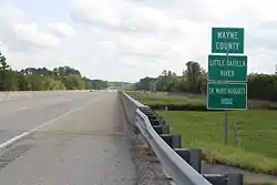The freshwater Little Satilla River forms at the juncture of Big Satilla Creek and Little Satilla Creek, close to the U.S. Route 84 crossing of the two creeks southwest of Screven. The river flows south as the boundary between Wayne and Pierce counties, then turns more southeast as it becomes the boundary between Pierce and Brantley counties. Turning fully to the east, it enters Brantley County, is crossed by U.S. Route 301, and joins the Satilla River 4 miles (6 km) southeast of Hortense.