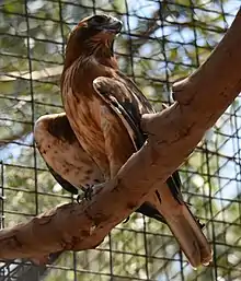 The little eagle (Hieraaetus morphnoides) is a very small eagle native to Australia, measuring 45–55 cm (17–21.5 inches) in length and weighing 815 g (1.8 lb), roughly the size of a peregrine falcon. It tends to inhabit open woodland, grassland and arid regions, shunning dense forest. It is a near relative of both the Palearctic booted eagle and the massive but now extinct Haast's eagle of New Zealand.[3]