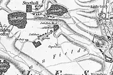 During Roman Britain, Littlebury Green was named 'Stretley' after its position on the Ermine Street route towards Chesterford.[1] A 16th-century will bequeathed a house at "Strelly Green commonly called Littlebury Green".[2] White's Directory mentions the Roman road and of records referring to the settlement as 'Streetly Green'[3]