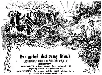 In addition to polemic articles, the newspaper published some literary works, particularly poems. Stefanija Jablonskienė (Stefania Jabłońska) published a few Lithuanian poems translated to Polish, including excerpts from The Forest of Anykščiai by Antanas Baranauskas, poems by Maironis, Adomas Jakštas, Liudas Gira.[24] She also translated Tautiška giesmė (which later became the national anthem of Lithuania) by Vincas Kudirka. It was the first translation of the poem into Polish, and it was published twice as poetic and word-by-word translations.[12]