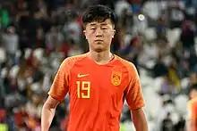 Liu received his first call up for the China national football team by manager Marcello Lippi for the training camp of 2019 AFC Asian Cup.[11] On 24 December 2018, he made his international senior debut in a 2–1 defeat against Iraq.[12] He was named in the final 23-man squad,[13] and played all five matches for China in the tournament.