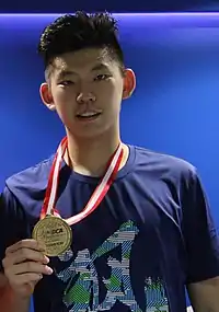 Liu Yuchen (Chinese: 刘雨辰; pinyin: Liú Yǔchén, born 25 July 1995) is a Chinese badminton player.[1] He was the men's doubles World Champion in 2018,[2] two times Asian Champion in 2017 and 2018, and also a silver medalist at the 2020 Summer Olympics partnered with Li Junhui. Liu was part of the national team member that won the 2018 Asian Games, 2018 Thomas Cup and 2019 Sudirman Cup. Together with Li, he achieved the men's doubles world number 1 in 6 April 2017, and occupied the top ranking for ten weeks.