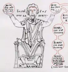 ![]() Liudolf from a 12th-century manuscript of the chronicle of Ekkehard of Aura | |