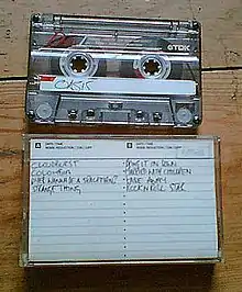 It is estimated that 10 cassette copies were sent out with a J-card insert depicting a swirling Union Jack and the now famous Oasis logo designed by Tony French.[2] More cassettes were handed out without the picture sleeve, but with instead, a handwritten set of notes.
