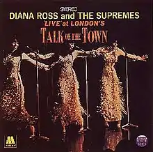 Live at London's Talk of the Town is a 1968 live album released by Diana Ross & the Supremes on the Motown label, recorded at the Talk of the Town nightclub. This performance marked the first time that new member Cindy Birdsong had performed overseas with original Supremes Diana Ross and Mary Wilson, a year after original founding member Florence Ballard was ousted. The group performed a variation of standards, show tunes, and their own classics with British rock stars Mick Jagger and Paul McCartney reportedly in attendance. The songs recorded are from the group's 1968 European tour. That European tour also garnered a famous Swedish television special that was used as a catalyst to promote this album.