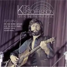 Live at the Philharmonic is a live album by Kris Kristofferson, released on Monument Records in 1992 (see 1992 in music). Performed at Philharmonic Hall in New York City on December 2, 1972, the concert followed the release of Kristofferson's successful Jesus Was a Capricorn. Aside from several songs from the latter, the singer performed a number of new pieces, as well as a few of his well-known hits such as "Sunday Mornin' Comin' Down" and "Me and Bobby McGee". Guest artists included Willie Nelson, who was a little-known personality in country music at the time, Rita Coolidge, Kristofferson's future wife, and Larry Gatlin, whose career was in its starting phases.