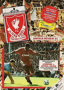 On 12 September 1989, Liverpool faced Crystal Palace in a First Division fixture at Anfield, during the 1989–90 season. Crystal Palace were newly promoted to the Division, while Liverpool had been narrowly pipped to the League title by Arsenal in the previous season. Liverpool won the match 9–0,[1] recording their biggest ever top-flight win,[2] and inflicting Palace's heaviest ever defeat.[3] Eight different players scored for Liverpool, the first time this has happened for the same club in English football history.[4]