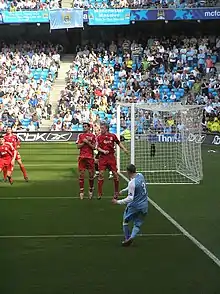 ![]() City's Michael Ball takes a free kick against Liverpool in the Premier League match in April 2007, at the City of Manchester Stadium.