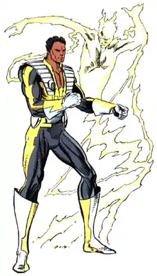 Living Lightning (Miguel Santos) is a fictional superhero appearing in American comic books published by Marvel Comics. He first appeared in Avengers West Coast #63, published in October, 1990.[1] The character was created by writers Dann Thomas and Roy Thomas and artist Paul Ryan.