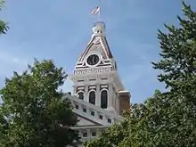 The current Livingston County Courthouse is the third building to carry that name. Construction on the present-day courthouse began in late 1874 and was completed late the next year. The courthouse was built after fire consumed the second Livingston County Courthouse on July 4, 1874. The plan for the courthouse was selected from a slate of ten candidate plans.[1] The County Board of Supervisors noted at the time that the selected plan "cost more money (but) it was the only one which for size, fire-proof qualities, and solidity would answer the purpose, and was indeed, in the matter of taste and elegance, much in advance of any other."[1] However, the author of the 1915 The County Archives of the State of Illinois called the building "hardly fireproof".[2] The courthouse clock tower was installed in 1892.[1] It served as the county's primary judicial center until late 2011, when a replacement Law and Justice Center opened across the street. It currently houses county offices that are not court-related.[3]