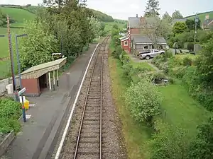 Llanbister Road railway station is a countryside stop about 5 miles (8 km) from the village of Llanbister, Powys, Wales. The station is 41+3⁄4 miles (67 km) south west of Shrewsbury on the Heart of Wales Line.