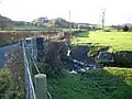 - Brynderwen Bridge - in the old Llandyssil parish, close to Abermule. A single 109-ft span across the Severn (and a smaller span across the canal) on five iron girders. Designed by Thomas Penson. The openwork lettering on the outer ones reads 'This second iron bridge constructed in the county of Montgomery was erected in the year 1852'; 'Thomas Penson, County Surveyor'; 'Brymbo Company, Ironfounders'. The bridge came from Brymbo Ironworks, later steelworks, near Wrexham, and would have been transported to the site by the Montgomeryshire Canal. Grade II* listed.[46]