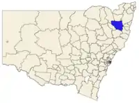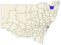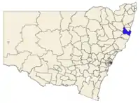 | Kempsey Shire | 11 June 1886 (Borough)[34] | 3,376 | 1,303 | 62 | 29,665 | 62 | ![]() | |