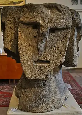 Of particular significance is the five-faced idol, which dates back to the 2nd millennium B.C. It is a special pre-Christian object that demonstrates a unique type of imagery.[3] It was found between Tatev and Goris (Harzhis village), and its excavation suggested the location of a pagan temple that existed there previously. Another significant work exhibited at the Museum is the bronze lion from the 7th century B.C. (the Urartian period), symbolic of the Urartian kings.[4]