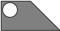 | Step 1: An arbitrary 2-D shape. | Step 2: Suspend the shape from a location near an edge. Drop a plumb line and mark on the object. | Step 3: Suspend the shape from another location not too close to the first. Drop a plumb line again and mark. The intersection of the two lines is the center of mass. |