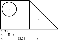 The center of mass of this figure is at a distance of 8.5 units from the left corner of the figure.