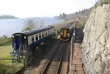 ![]() An Oban to Glasgow train approaching Loch Awe station | |
