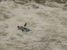 Kayakers and whitewater rafters run the Lochsa, generally between April and June. The "Lochsa River Floating Guide" lists more than 60 rapids between Powell and Lowell, most of which are rated Class III-IV (medium to difficult). Depending on the discharge rate, the level of difficulty can rise in places to Class VI (the limits of navigation) on the International Scale of River Difficulty.[22] The ratings in the "Floating Guide" reflect the difficulty of the Lochsa's rapids when the water levels at the bridge at Lowell are between 5 feet (1.5 m) and 8 feet (2.4 m).[22] The gage at the bridge differs from the USGS gage. A warning to whitewater rafters posted at the USGS web site for its gage says: "This stage reading is from the USGS gaging station 0.7 miles upstream from Lowell bridge, and it may read between 2-3 feet higher than the stage reading on the staff gage at Lowell bridge. This [the USGS gage reading] is not the stage reference to float the Lochsa River."[4] The USGS site advises rafters to check with the Lochsa Ranger District for readings from the bridge.