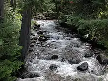 The Lochsa River is in the northwestern United States, in the mountains of north central Idaho. It is one of two primary tributaries (with the Selway to the south) of the Middle Fork of the Clearwater River in the Clearwater National Forest. Lochsa is a Nez Perce word meaning rough water.[6][7] The Salish name is Ep Smɫí, "It Has Salmon."[8]