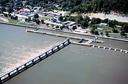 ![]() Lock and Dam No. 24 viewed from the Missouri side of the river, looking northeast toward Illinois |