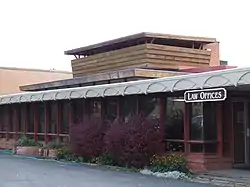 After the law partnership between the Morrisons and Framptons ended in 2016, the building, locally known as the Frank Lloyd Wright Building, was sold to Mick Ruis, a developer from Columbia Falls, Montana who presented his plans to demolish the building and replace it with a three-story mixed-use development late that year.[14] He was apparently unaware when he submitted the plans that the building was protected and considered historic, but after being made aware of this he nevertheless continued with his plans to raze it,[5] which was originally slated for late 2018.[15] Local residents and members of the Montana Preservation Alliance led a movement to save the building.[14]