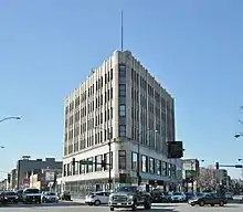 This office and retail building was designed by the firm of Leichenko and Esser, the design team that executed the Narragansett Apartments in the lakefront neighborhood of Hyde Park. The camel insignia that abundantly decorates the building's exterior is a version of the logo that decorated Hump Hair Pin packages, which is why local Poles colloquially referred to the structure as "pod wielbłądem," which translates into English as "the building beneath the camel".[1] Colloquially known as "the Hump building", it was built in 1930 for Sol Goldberg, an entrepreneur who made his fortune by redesigning the hairpin. Goldberg's "hair pin with the hump" was a U-shaped wire with a "non-rust satin enamel finish," a few crinkles on each side, and the company's signature innovation: a strand-grabbing short third arm in the center.[1]