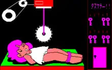 A girl is strapped to a table, and a circular buzz saw is slowly moving towards her. The player must choose the correct key from ten keys in order to release the girl, and is limited to five guesses.[2] After five incorrect guesses, the buzz saw slices the girl who explodes into a fountain of gore and dies; if the player is successful in freeing the girl, she takes off her clothes.[5]