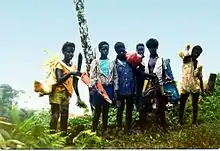 Boys from Buin and Siwai visiting Lake Loloru (1978).