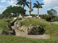 Declared National Historic Site of Cuba in 1990,[1] along with the museum-monument of the armored train a staircase was built in order to reach the top of the hill where a metal sculpture by Jose Delarra is resting in a green marble base. It symbolizes the will to unify the Cuban nation. The trenches dug by the rebel forces surround the monument. The place serves as lookout post for the outstanding beauty of Santa Clara valley savanna, interrupted here and there by royal palms and farmlands. The city lies down the hill facing South West. Locals used to gather around at night in the site with guitars to serenade friends. In 2002 "Trabajos Comunales" (Community Works), a government enterprise in charge of every city public works, considered the possibility of turning the three hills and surrounding areas into a city natural recreation park and zoo; but without any funds for the idea, they had to keep improving the small city zoo instead.