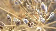 This plant is a traditional source of food for many Native American groups, and its parts are used medicinally, including as a treatment for tuberculosis.[4] It also has been used ceremonially in association with the fishing and processing of salmon among peoples of southwestern British Columbia and Washington. For example, the W̱SÁNEĆ (Saanich), who called it qexmín, burn the seeds in a fire or on a stove when drying the salmon. Among other peoples also, including the Kwakwaka'wakw and Nuu-chah-nulth, the seeds are burned as an incense at funerals and chewed by singers to ease their throats.[5]