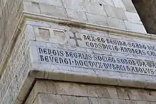 Unlike Gothic capitals, Lombardic capitals were also used to write words or entire phrases. They were used both in illuminated manuscripts and monumental inscriptions, like the bell tower of Santa Chiara, Naples. In Italian, the style is known as "Longobarda" after an earlier spelling of the Lombardy region.[3]