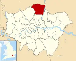 pronunciation ) is a London borough in North London. It borders the London boroughs of Barnet to the west, Haringey to the south, and Waltham Forest to the southeast. To the north are the districts of Hertsmere, Welwyn Hatfield and Broxbourne in Hertfordshire), and to the east is Epping Forest District in Essex. The local authority is Enfield London Borough Council. Enfield's population is estimated to be 333,794; the main towns in the borough are Edmonton, Enfield, Southgate and Palmers Green. Enfield is the northernmost London borough.
