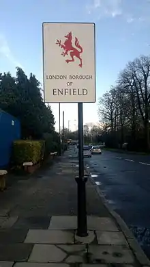 The current borough was created in 1965 from the former areas of the Municipal Borough of Southgate, the Municipal Borough of Enfield and the Municipal Borough of Edmonton. The armorial bearings of these three boroughs were also merged. The heraldic beast on the shield of the Enfield coat of arms is known in heraldry as an "Enfield" (or colloquially as the Enfield beast), and is used extensively as a logo representing Enfield, particularly by the borough council.