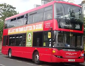 London Buses route 281 is a Transport for London contracted bus route in London, England. Running between Hounslow and Tolworth, it is operated by London United using 25 buses.[1]