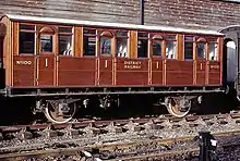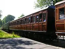 A preserved carriage at the Kent and East Sussex Railway was thought to be a District Railway first class, but now thought likely to be a cutdown Metropolitan Railway eight-wheeler.[35][36] A Jubilee Stock first class carriage was restored to carry passengers in January 2013 during the Met's 150th anniversary celebrations.[37][38] The Bluebell Railway has four 1898–1900 Ashbury and Cravens carriages, and a fifth, built at Neasden, is at the London Transport Museum.[39] The Vintage Carriages Trust has three preserved Dreadnought carriages.[40]