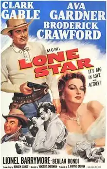 Lone Star is a 1952 American Western film starring Clark Gable, Ava Gardner, Broderick Crawford, Ed Begley, and Lionel Barrymore (in his final role) as President Andrew Jackson. The film also marks the first (uncredited) screen appearance by then-13-year-old George Hamilton, playing beside Barrymore in the role of Jackson's servant.[2]
