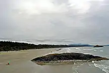 Long Beach is the largest and longest beach in the Pacific Rim National Park Reserve on the west coast of Vancouver Island, British Columbia, Canada.[1] It is located on Wickaninnish Bay between Tofino (NW) and Ucluelet (SE) and is adjoined by campgrounds and picnic areas. The Tofino-Ucluelet highway parallels the entirety of the beach. The beach's consistent surf, exposed to the open Pacific Ocean, established it as one of the earliest and most popular surfing locations in British Columbia.