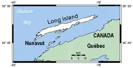 Long Island is one of the many uninhabited Canadian arctic islands in Qikiqtaaluk Region, Nunavut. It is located in Hudson Bay off the coast of Quebec at 54°52'N 79°25'W, and has an area of 168 km2 (65 sq mi).[1]