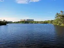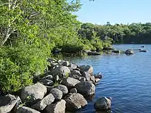 Long Lake is a provincial park controlled by the Department of Natural Resources and Renewables of the Government of Nova Scotia (formerly called the Department of Lands and Forestry).[1] The park is not as well known as some other local public spaces despite its proximity to central Halifax and its large size, rivalling that of the Halifax peninsula. In 2003, the Department of Natural Resources entered into consultation with the Long Lake Provincial Park Association on the development of a park management plan which was completed in 2008 and subsequently adopted for park management purposes. In early 2015 the Long Lake Provincial Park Association started to build accessible walking and cycling trails on the east side of the lake near Northwest Arm Drive (Dunbrack Street) in Spryfield. These were constructed under a formal agreement between the association and the provincial government. There are now approximately 5.5 kilometers (3.4 mi) of wide multi-use trails that lie along the east side of Long Lake, together with a loop around Withrod lake. Benches are installed along the trail and members of the public can have plaques installed on the benches. There is also a parking lot and a washroom across from the Cowie Hill Road. Another parking lot has been added along with a Kayak/Canoe launch at the location of the old pumphouse on Old Sambro Road across from Schnare Street.