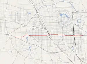 The expressway eastern terminus is at Shangdu Avenue (G220 / G310). It is then elevated above Anping Road, Yongping Road, Huozhan Street, and Longhai Road from east to west.