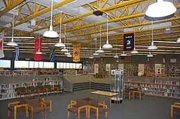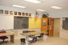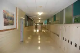The main two-story academic wing housing most of the school's classrooms extends out to the west from the core lobby area. North of the core lobby is the new gymnasium and athletic and physical education spaces as well as the renovated 1971 wing which was completed during the summer of 2013. The reused wing was nearly completely gutted on the inside and received a completely new brick facade to match the new 2013 building with only the swimming pool and its locker rooms remaining laid out as they were originally built.[6]