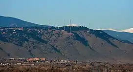 ![]() Lookout Mountain, as seen through a telephoto lens from downtown Denver. | |