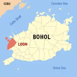 Loon, officially the Municipality of Loon (Cebuano: Munisipalidad sa Loon; Tagalog: Bayan ng Loon), is a 2nd class municipality in the province of Bohol, Philippines which was established in 1753. According to the 2020 census, it has a population of 44,224 people. [3]