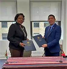 ![]() Loreen Ruth Bannis-Roberts with Karlito Nunes, ambassador of East Timor (2021) | |