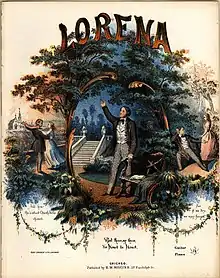 "Lorena" is an antebellum song with Northern origins. The lyrics were written in 1856 by Rev. Henry D. L. Webster, after a broken engagement. He wrote a long poem about his fiancée Ella Blocksom, but changed her name at first to "Bertha" and later to "Lorena", perhaps an adaptation of "Lenore" from Edgar Allan Poe's poem "The Raven." Henry Webster's friend Joseph Philbrick Webster wrote the music, and the song was first published in Chicago in 1857. It became a favorite of soldiers of both sides during the American Civil War. Members of the Western Writers of America chose it as one of the Top 100 Western songs of all time.[1]