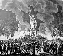 After the bad harvest of 1846, after the economic crisis year of 1847 and after the French Revolution of 1848 that broke out in France, political unrest also flared up in the Kingdom of Prussia with demands for democratic reforms and national unity. This unrest quickly expanded into a march revolution. During this period, Cantador intervened in events in Düsseldorf, the parliamentary seat of the Prussian Rhine Province. On 18 March 1848, the day before King Frederick William IV of Prussia authorised the establishment of citizen guards, he was among the founders of a vigilance committee, which elected him its commander on 26 March 1848 by 735 votes out of 949. By November 1848, some 2,500 men had joined it, including Lorenz Clasen, Ferdinand Freiligrath, Johann Peter Hasenclever, Carl Hilgers, Karl Hübner, Rudolf Jordan, Ferdinand Lassalle, Carl Friedrich Lessing, Wolfgang Müller von Königswinter and Hugo Wesendonck. The vigilante group, which was later increased to around 3,500 men, was able to arm itself from older stocks from the Cologne artillery depot. The task of the Bürgerwehr was the "protection of legal freedom, preservation of concord and peace among all members of civil society, defence against any disturbance of public order".[8] The Bürgerwehr was also the sign of the democratic awakening and the assumption of power by the people. The arming of the people was based in the people's militia idea of the French Revolution.[9] Cantador had the vigilantes parade around the city in public view to demonstrate this to the representatives of the Prussian crown and the Prussian military.