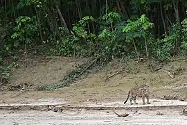A Peruvian jaguar near the river. This population of the jaguar had been considered as a subspecies.[1]