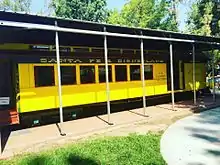 In addition to the items on display inside the barn, the combine car from the Disneyland Railroad's original Retlaw 1 passenger train, and a miniature train station once owned by Disney animator Ollie Johnston, are on display adjacent to the barn.[3][4] A surviving locomotive and two train cars from the former Mine Train Through Nature's Wonderland Disneyland attraction will also be displayed next to the barn after they are restored by the Carolwood Foundation.[5]
