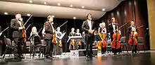 The Los Angeles Virtuosi Orchestra is an orchestra of professional musicians; its sizes ranges from 22 strings to a full orchestra of about 45 musicians, depending on the works performed.[6]