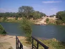 Los Ebanos Ferry as seen from Mexico in 1999. The US Border Inspection Station is on the opposite shore